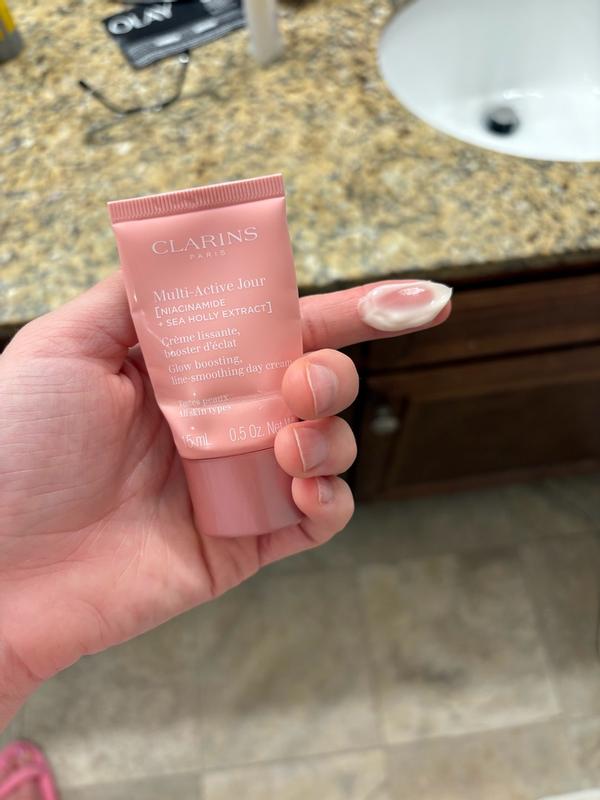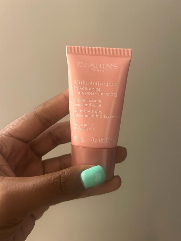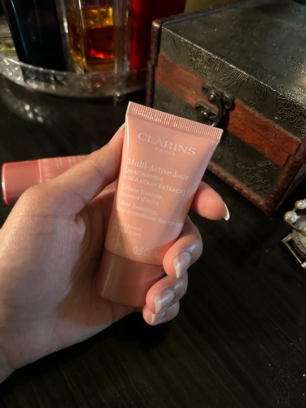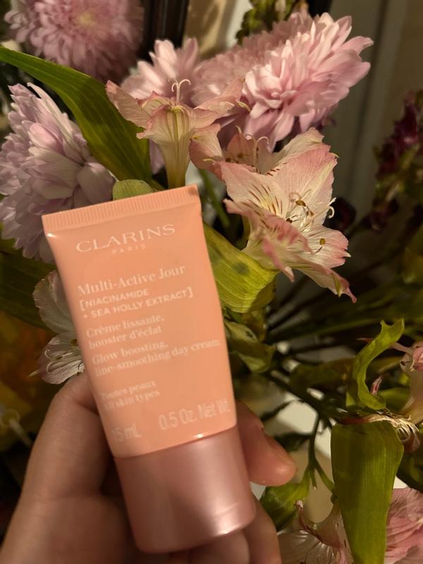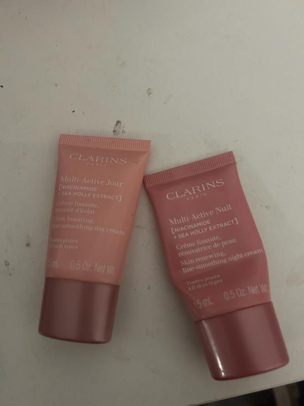 I recently bought this a month ago I absolutely love it! My GO TO. I am wanting to get the night cream soon. I have very sensitive skin and allergic to most fragrances. CLARINS IS TOP NOTCH FOR THESE ISSUES.